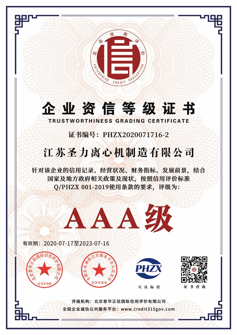 江蘇圣力離心機制造有限公司是國內(nèi)分離機械行業(yè)中主要的離心機生產(chǎn)企業(yè),對離心機的研究、設計、制造有多年的歷史,擁有齊全的設備、完善的檢測手段。公司已通過IS09000國際質(zhì)量體系認證、ISO14001環(huán)境管理體系認證、ISO45001:2018職業(yè)健康安全管理體系認證和CE認證,是江蘇省高新技術企業(yè),曾榮獲國家和地方多項榮譽稱號。